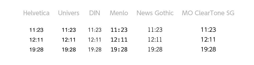私でしたら、Helvetica、Univers、DIN、Menlo、News Gothic、MO ClearTone SGあたりからトライしてみます。