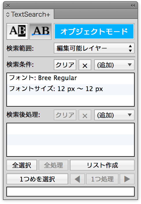 有償のプラグインですが、「Illustratorプラグイン PlugX-Search+2」を使うと、かなり込み入った検索(置換)が可能です。