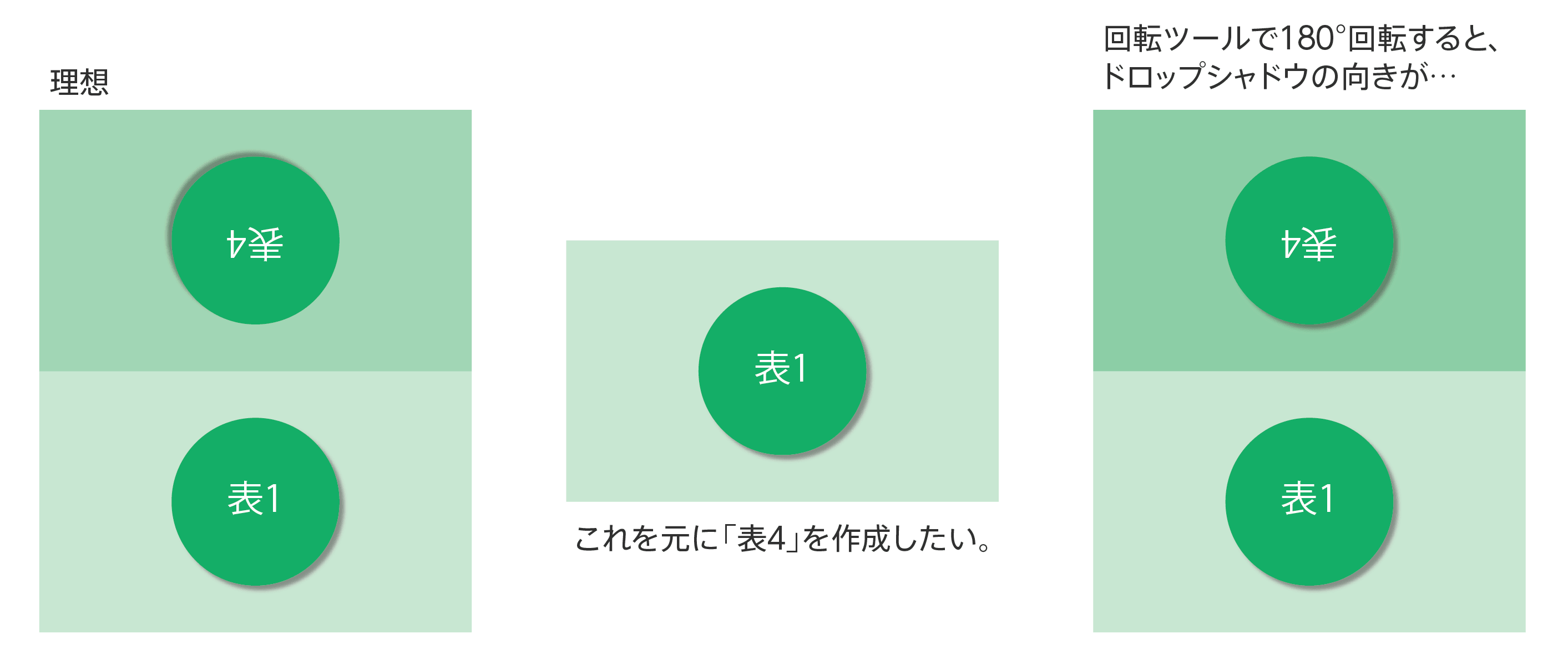 [レイヤー]パネルの[変形]の目のアイコンをクリックして非表示にすれば、回転されない状態になるので編集がラクです。